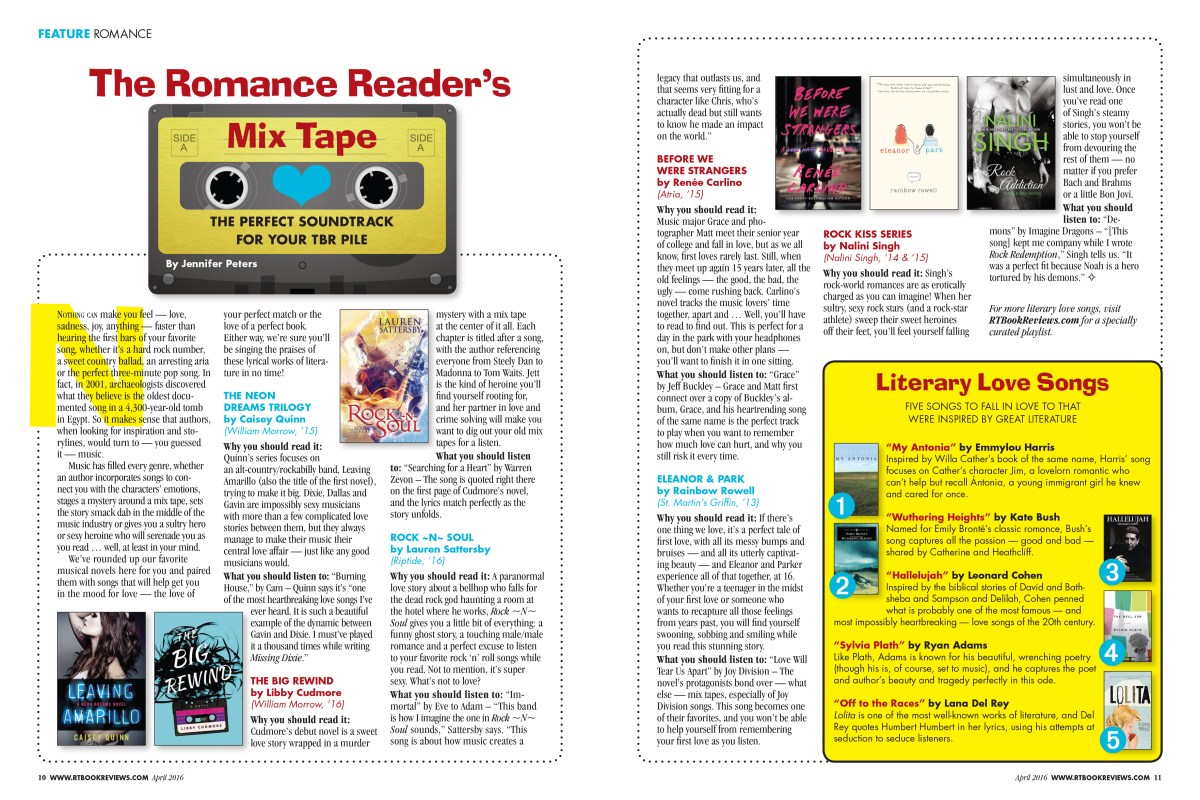 The Romance Reader’s Mix Tape Published May 19, 2016 at 4725 × 3150 in inspiration ← Previous Next → Images were either provided or created from Creative Commons art, which I manipulated in Photoshop. (We had no art budget to speak of at this magazine.) RT Book Reviews Magazine Like Loading...