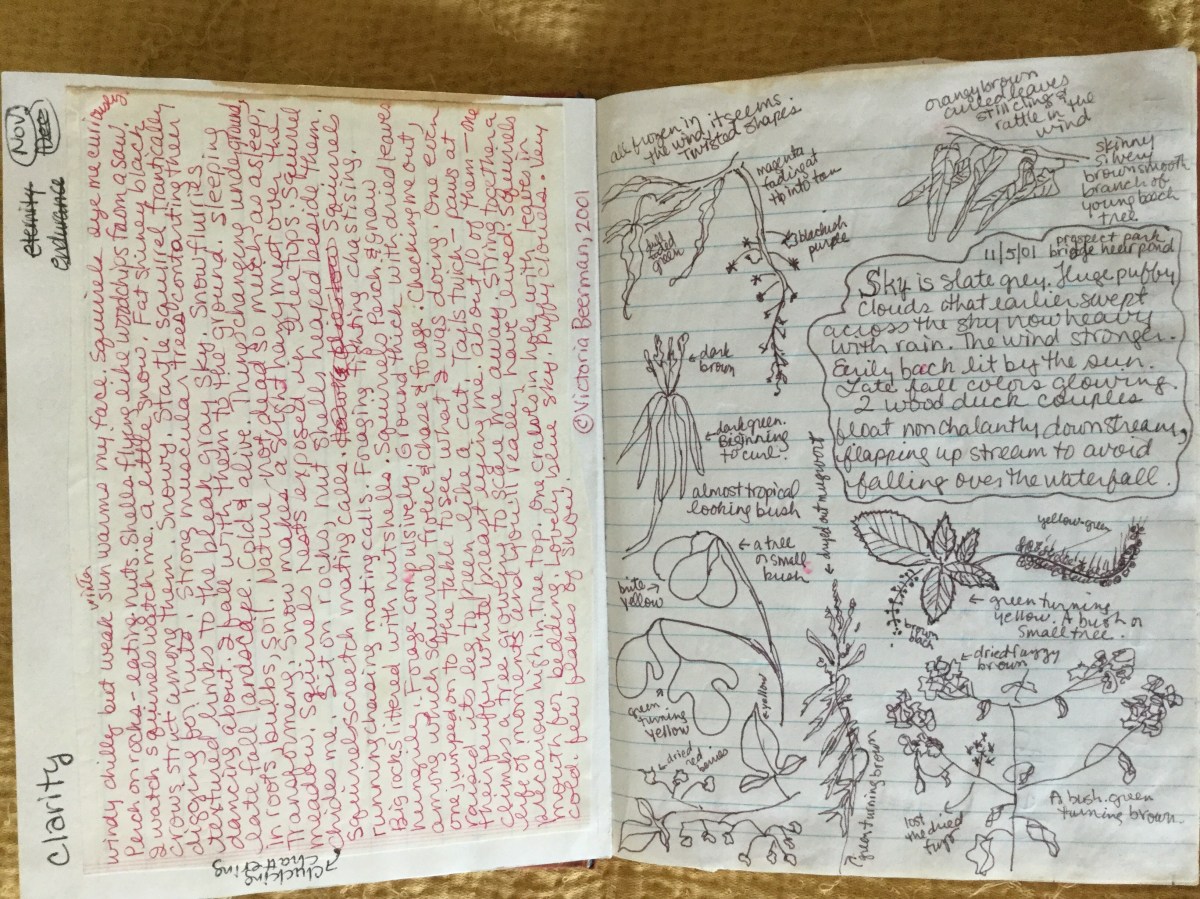 Rough text and sketches I did in Prospect Park. My sketches and journal entries from time spent in the park were the inspiration for my Eco-Mandalas, as well as my book artist book, Prospect Park Illuminated.