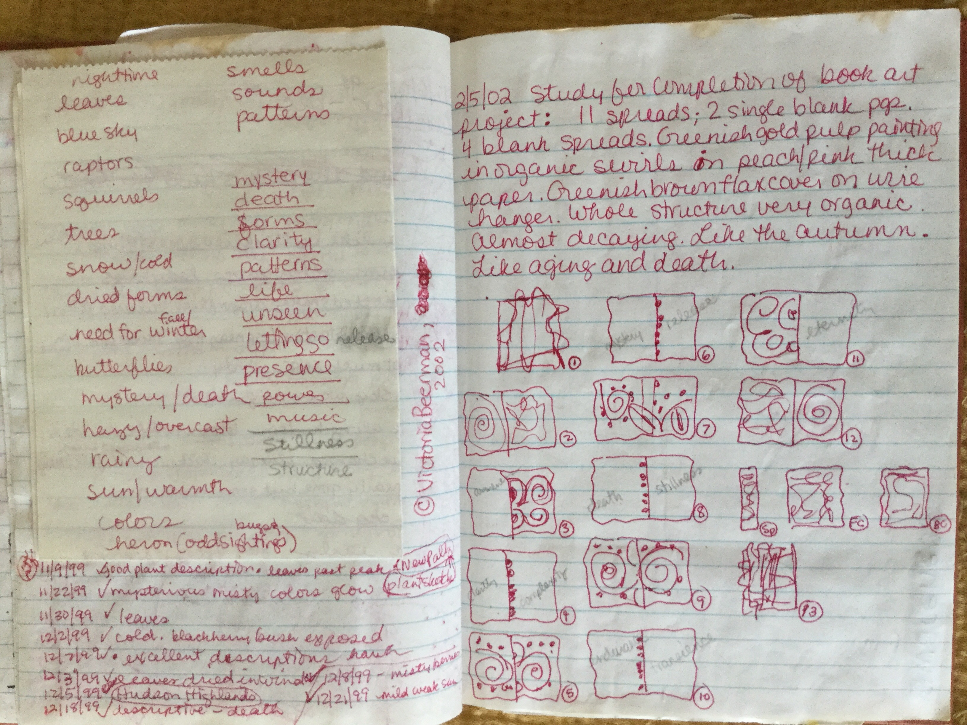 My sketches and journal entries from time spent in Prospect Park were the inspiration for my Eco-Mandalas, as well as my book artist book, Prospect Park Illuminated. Here, I am working out the book pacing.