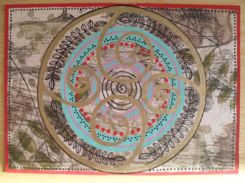 Eco Mandala II Published April 19, 2013 at 800 × 600 in mixed media/prints ← Previous Next → Eco Mandala II Based on sketches done in Prospect Park, Brooklyn Mixed media including handmade paper, etchings, gouache, ink (In the collection of Gillian Gutenberg)